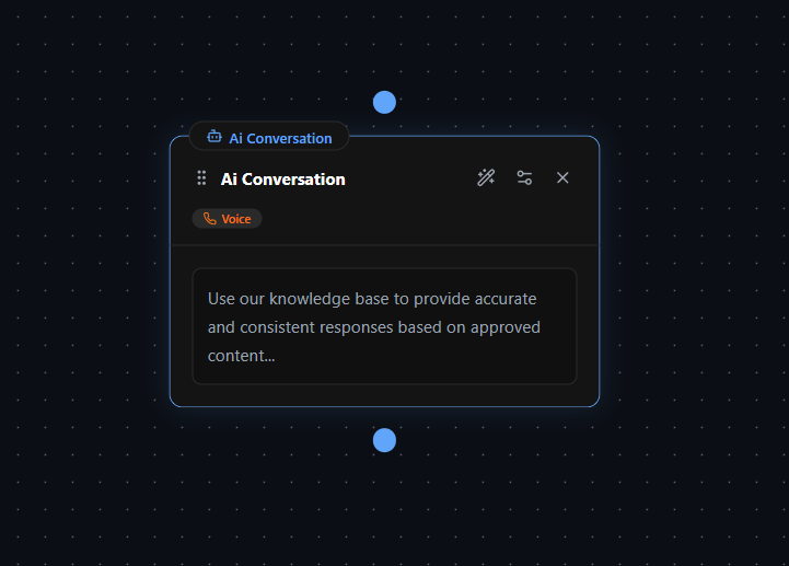 - AI Conversation Node: The core node where you provide specific instructions to the AI for handling a segment of the conversation.